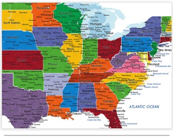 Detailed Usa Map With Cities And States Labels Us Map Print Etsy Canada
