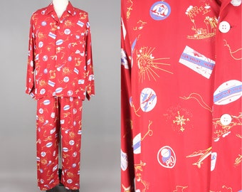 1950s Travel Novelty Print Pajamas Vintage 50s Rayon Sleep Etsy
